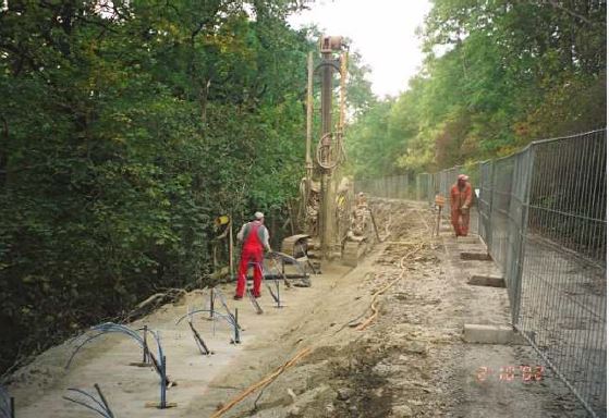 - Randbalken mit Rückverankerung durch Mikropfähle, Spezialgründung auf Pfahlkopfplatte