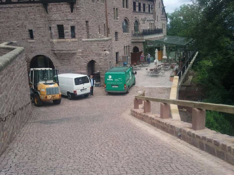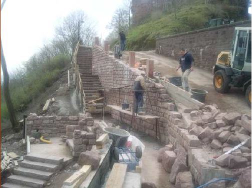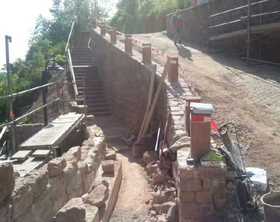 - Abriss und Neubau der Zufahrtsstraße mit angrendender Stützmauer und Treppenanlage