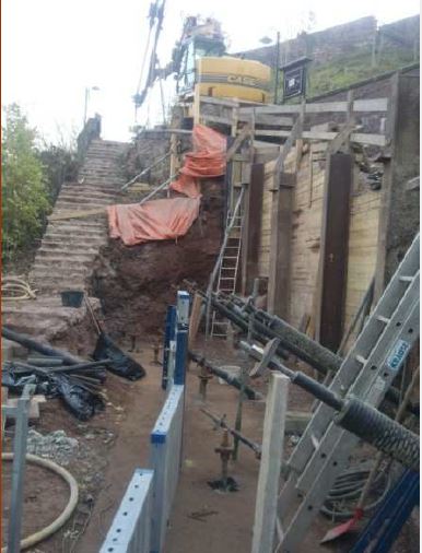 - Mauergründung auf Mikropfählen und Rückverankerung der Stützmauer im Fels